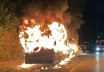 In den frühen Morgenstunden ist trotz Löschmaßnahmen des Fahrers und der Feuerwehr München ein Bus komplett ausgebrannt.