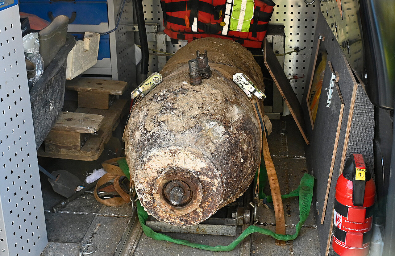 Bei Erdbewegungsarbeiten am Rande des Westfriedhofs ist eine 500 Kilogramm schwere Fliegerbombe aus dem Zweiten Weltkrieg gefunden worden. Der Blindgänger wird voraussichtlich am Sonntag, 23. November 2025 vor Ort entschärft.