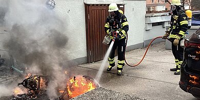 | Ein vermeintlich kleines Feuer hat am Sonntagnachmittag zu einer beachtlichen Rauchentwicklung geführt. Ein brennendes Kleinkraftrad war letztlich schnell abgelöscht.