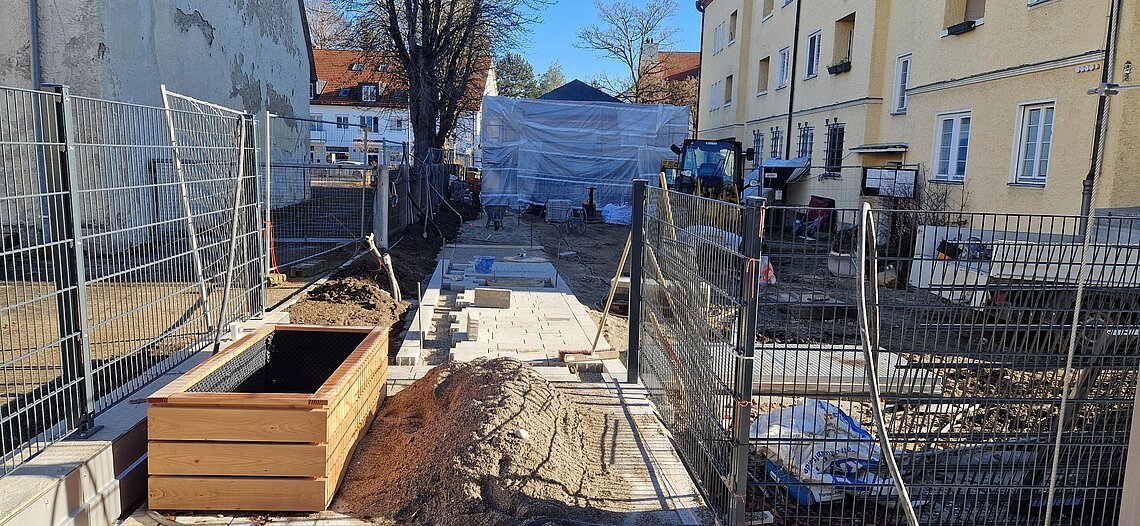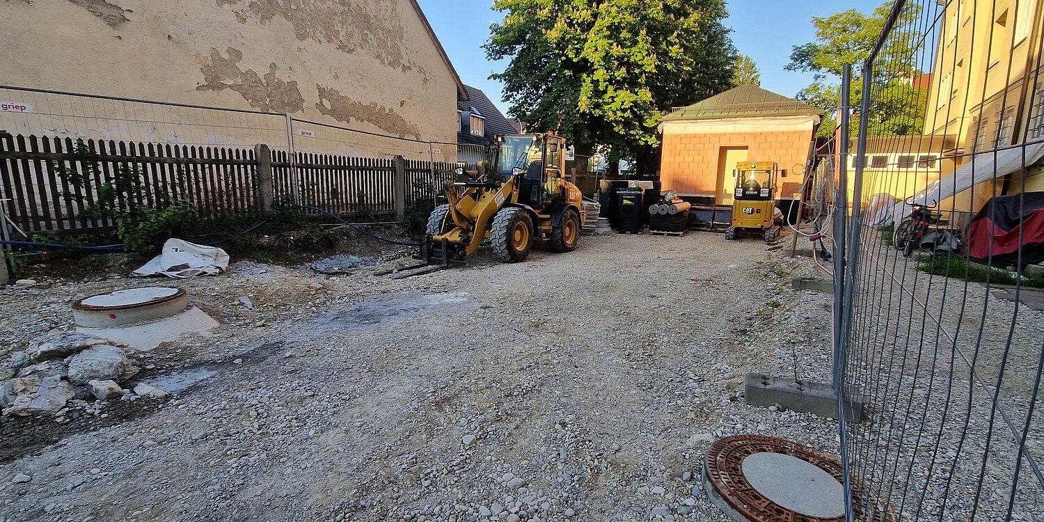 Die Fläche für die Container wurde begradigt. Zudem wurde mit dem Abbruch eines Spielhäusschens auf dem Spielplatz begonnen.
