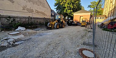 Am neuen Gerätehaus wurde ein Schacht für die Anschlussleitungen eigebettet.