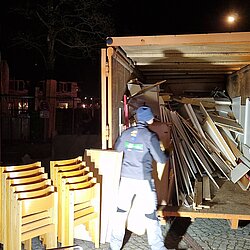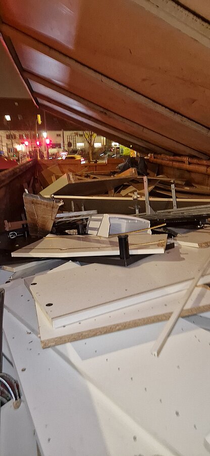 Diverse Regale und Kleiderständer wurden aufgebaut und an ihren Platz gebracht. Im alten Gerätehaus wurde die Küche und ein paar Schränke ausgeräumt.