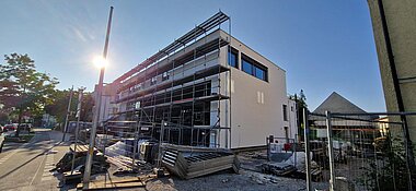 In der letzten Woche waren die Fensterbauer fleißig. Es konnten fast alle Fenster im Gerätehaus eingebaut werden. Somit fehlen nur noch ein paar Fenster zur Dachterasse hin. Ebenfalls wurde das Gerätehaus an das öffentliche Stromnetz angeschlossen werden, hierfür musste der Gehweg geöffnet werden, dadurch musste der Gehweg verschoben werden. Eine Spur der Würmtalstraße musste als Ersatzradweg gesperrt werden, da die Fußgänger auf dem Radweg gehen.